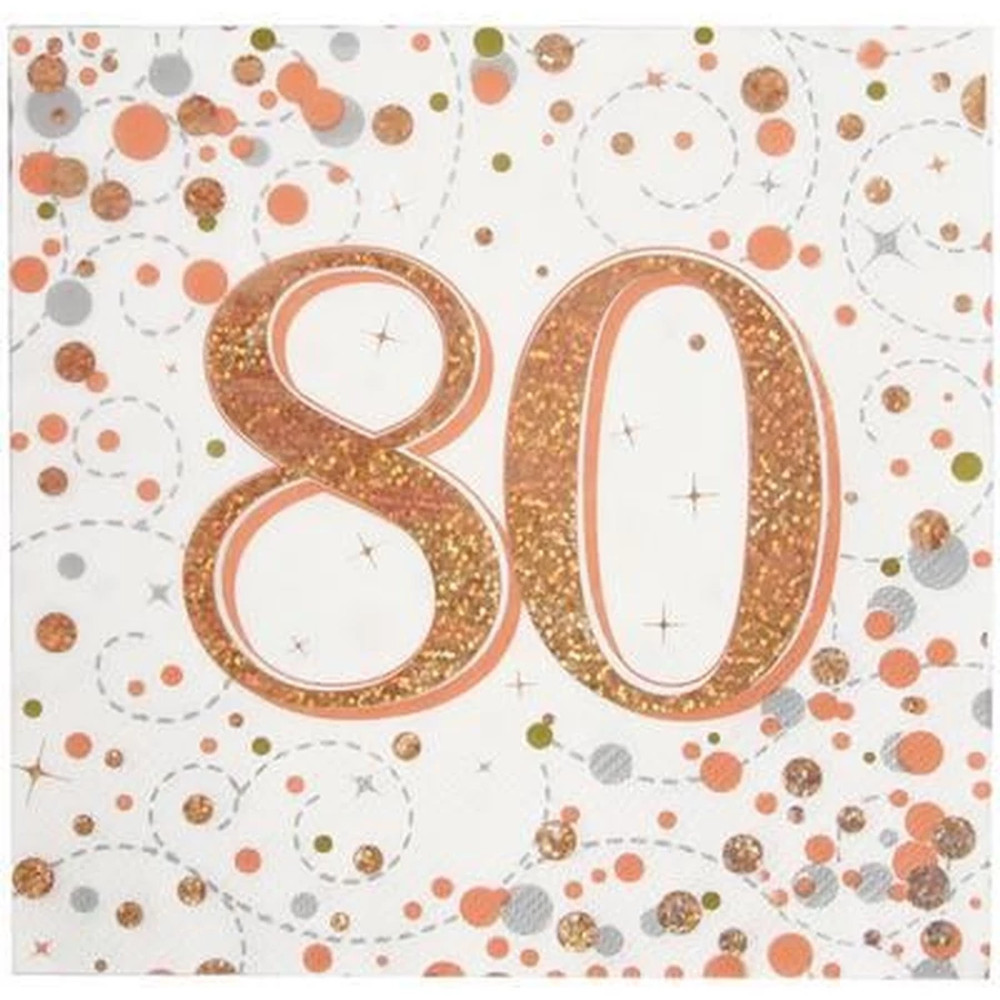 Csillogó születésnapi szalvéta 80-as felirattal.