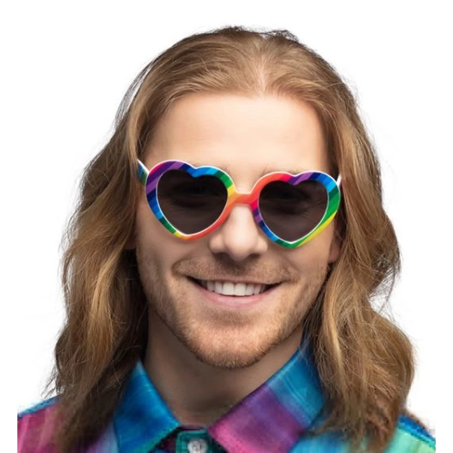 Szivárvány színű, szív alakú napszemüveg.