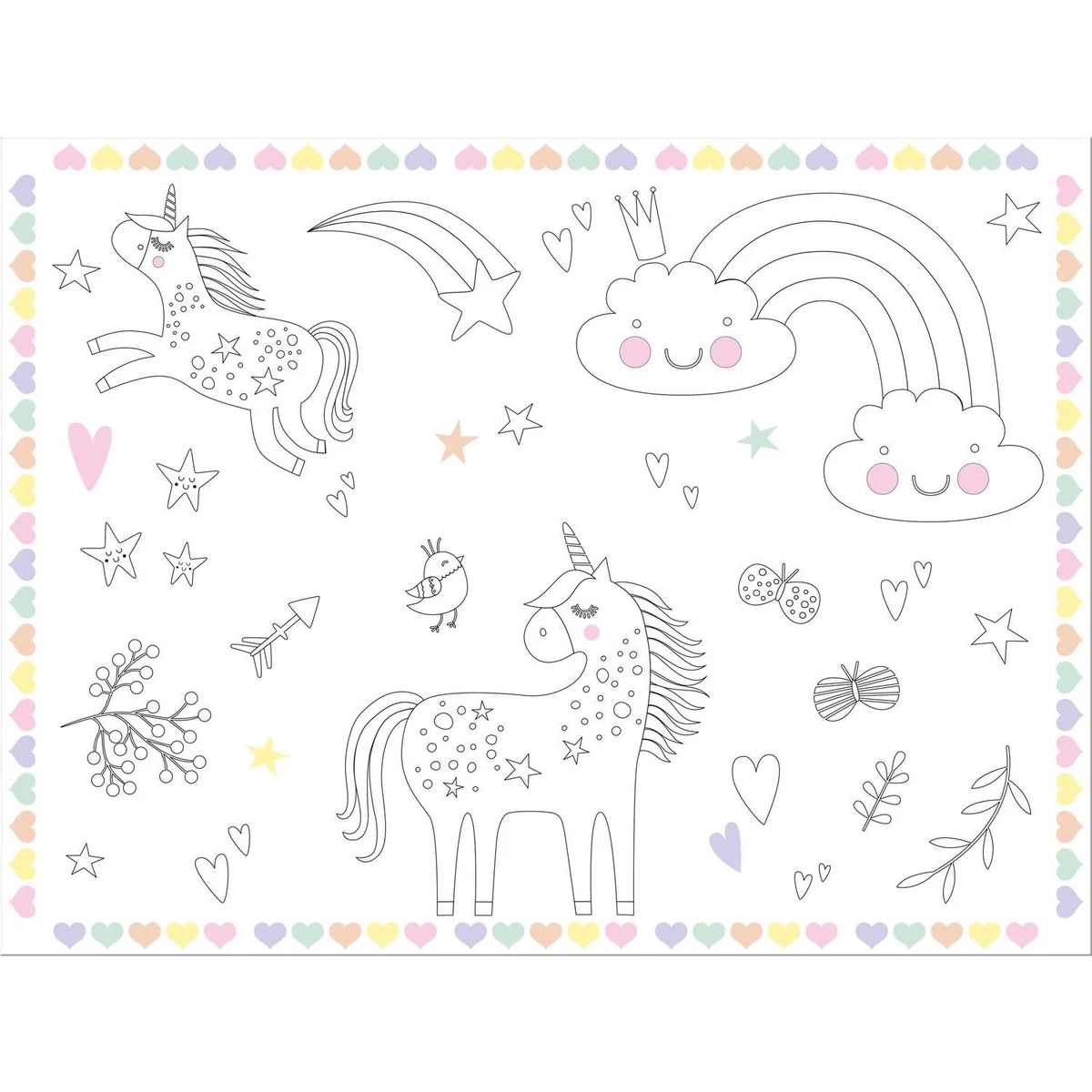 Színzhető tányéralátét unikornisos mintával. 40 x 30 cm méretű. 6 darab/csomag.