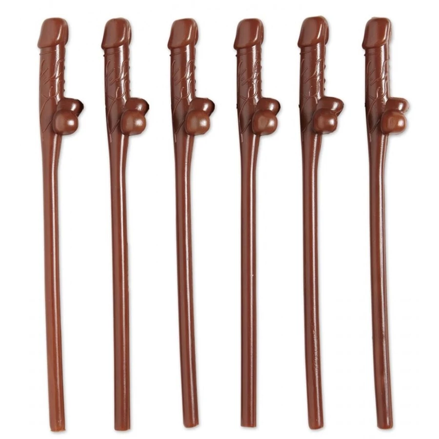 A lánybúcsú parti egyik leglátványosabb és talán legviccesebb elemei ezek a csokibarna fütyis szívószálak lesznek, amik a koktélok, italos poharakból kandikálnak kifelé. Vicces és merész válasz