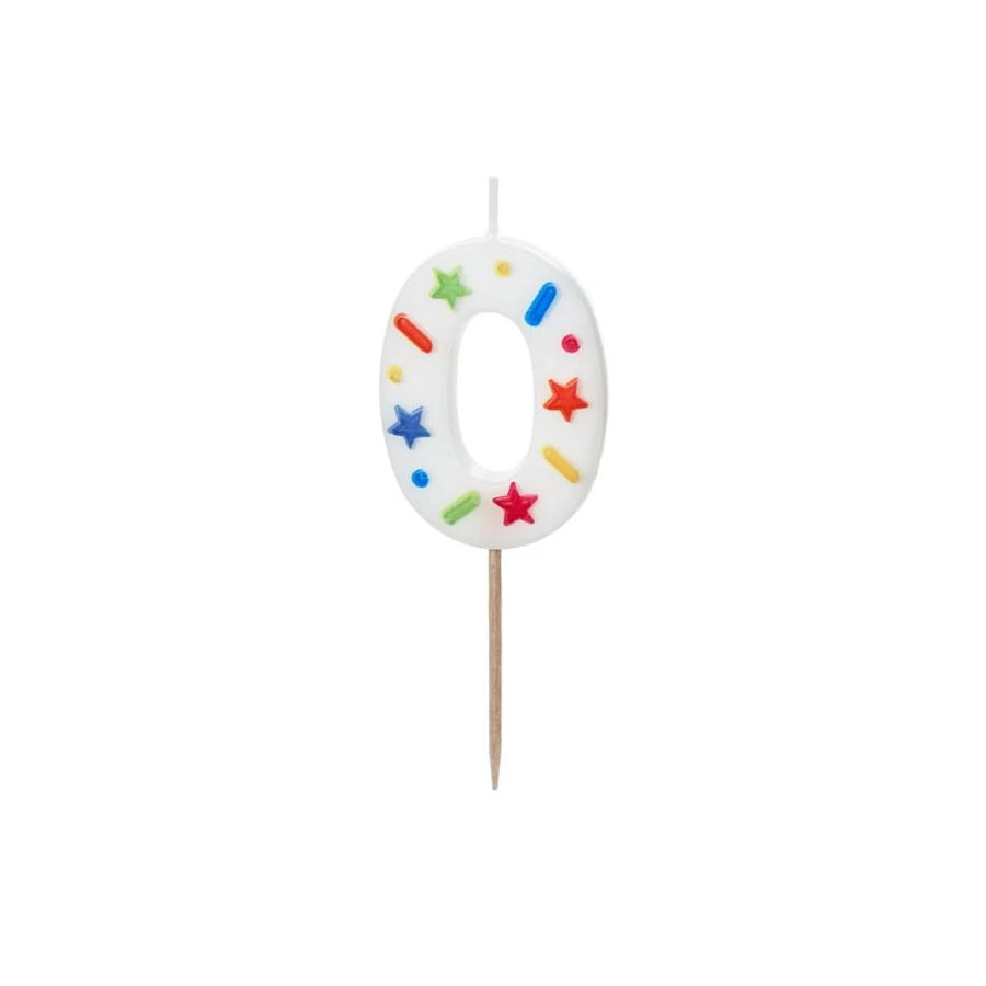 Szülinapi Gyertya Fehér Konfettis – '0' 5,5cm