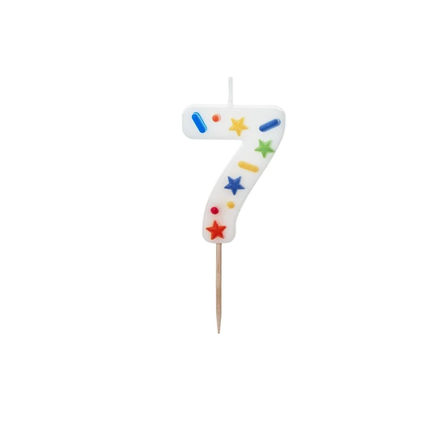 Szülinapi Gyertya Fehér Konfettis – '7' 5,5cm