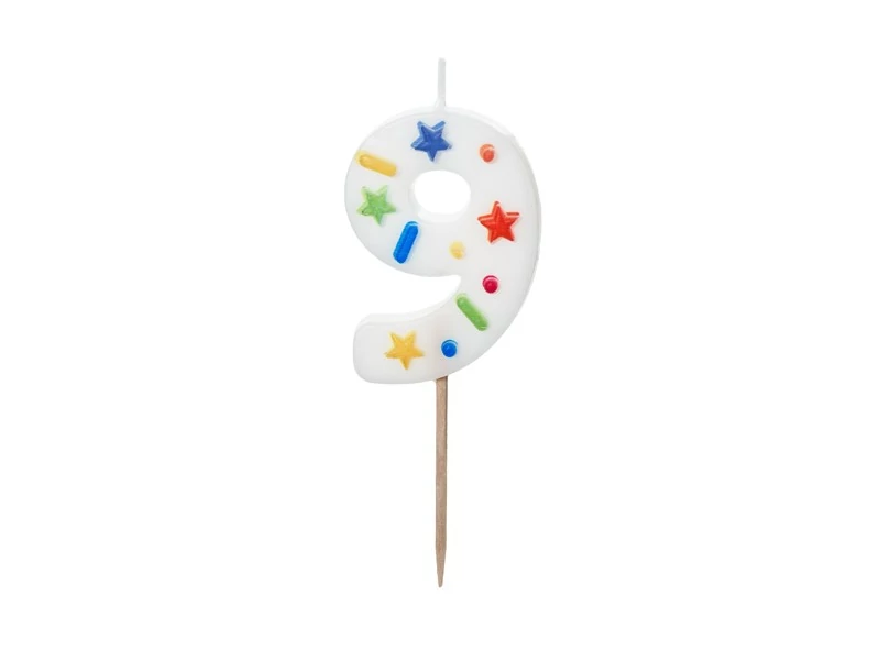 Szülinapi Gyertya Fehér Konfettis – '9' 5,5cm