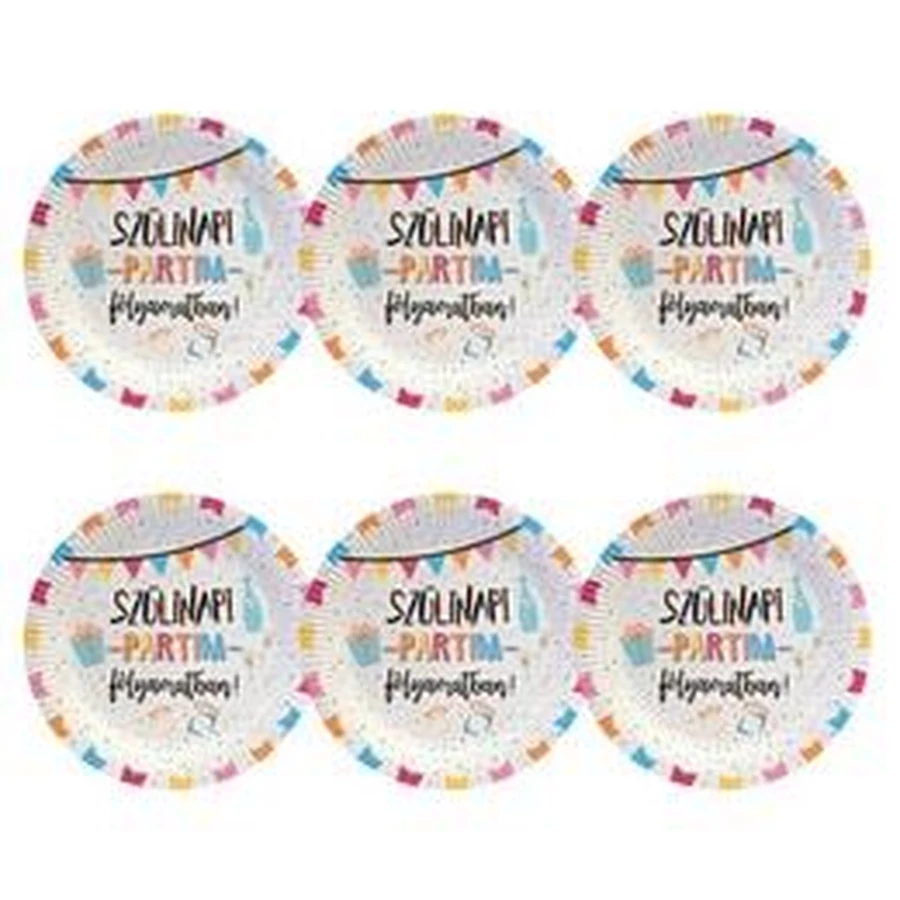 Szülinapi Partim Folyamatban! Feliratú Parti Tányér, 23 cm, 6 db-os