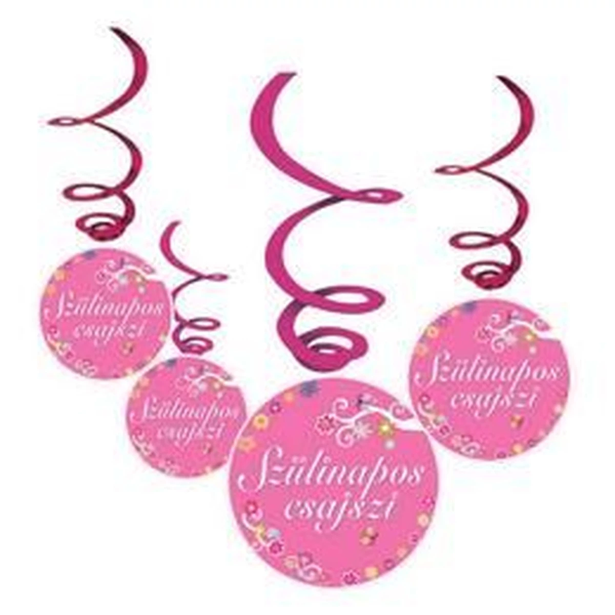 Szülinapos Csajszi Pink Spirálos Függődekoráció - 6 db-os