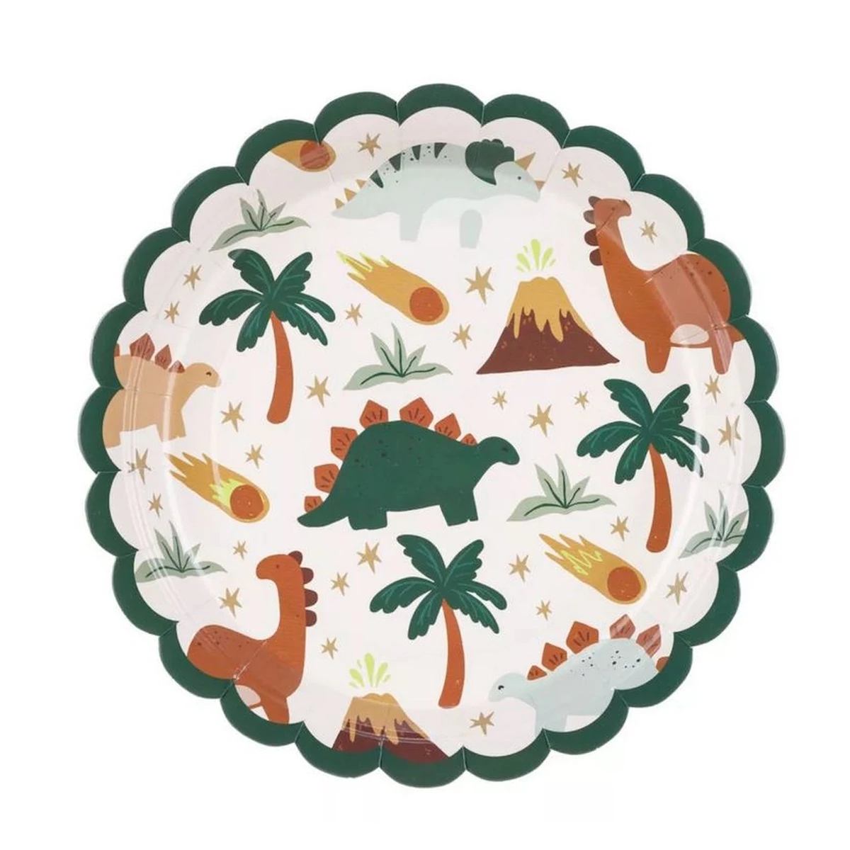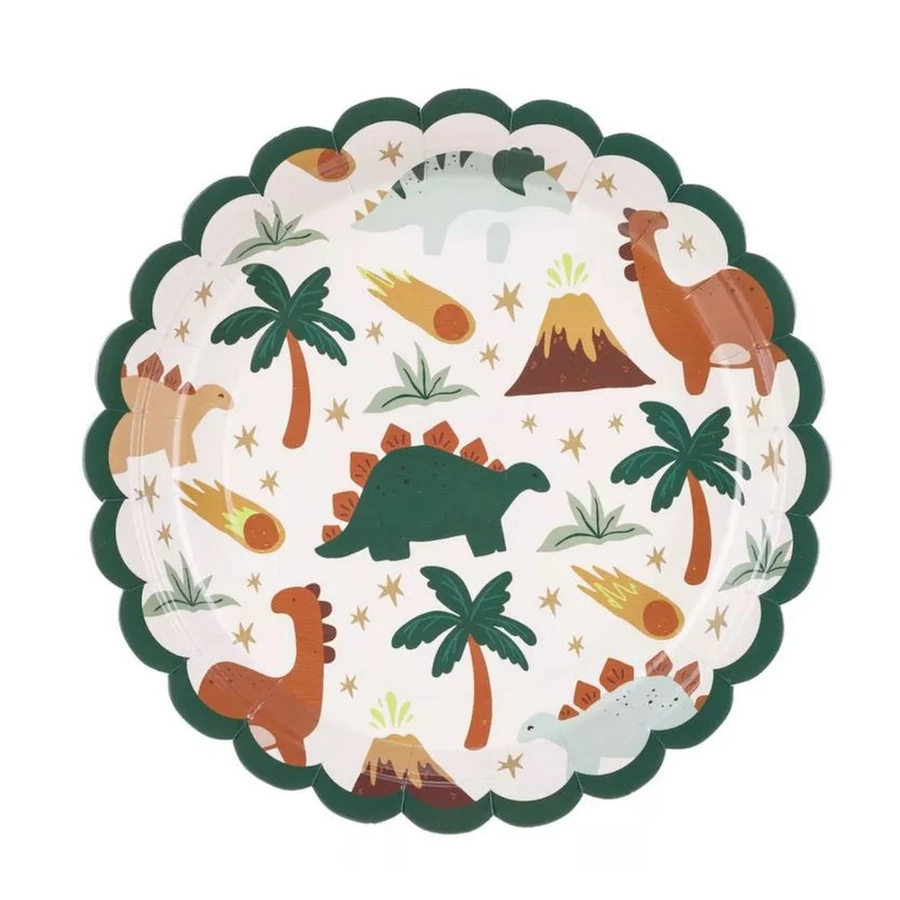 Dínó mintás parti papír tányér. 6 darab/csomag. 18 cm átmérő.