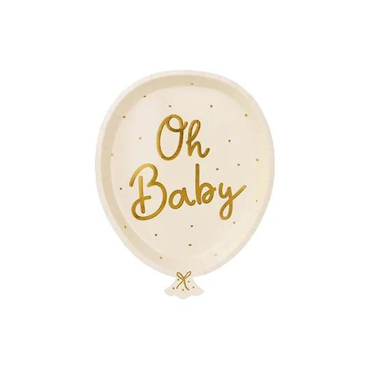 Papírtányérok léggömb alakú, Oh baby felirattal, mérete kb. 17,5 x 22 cm.