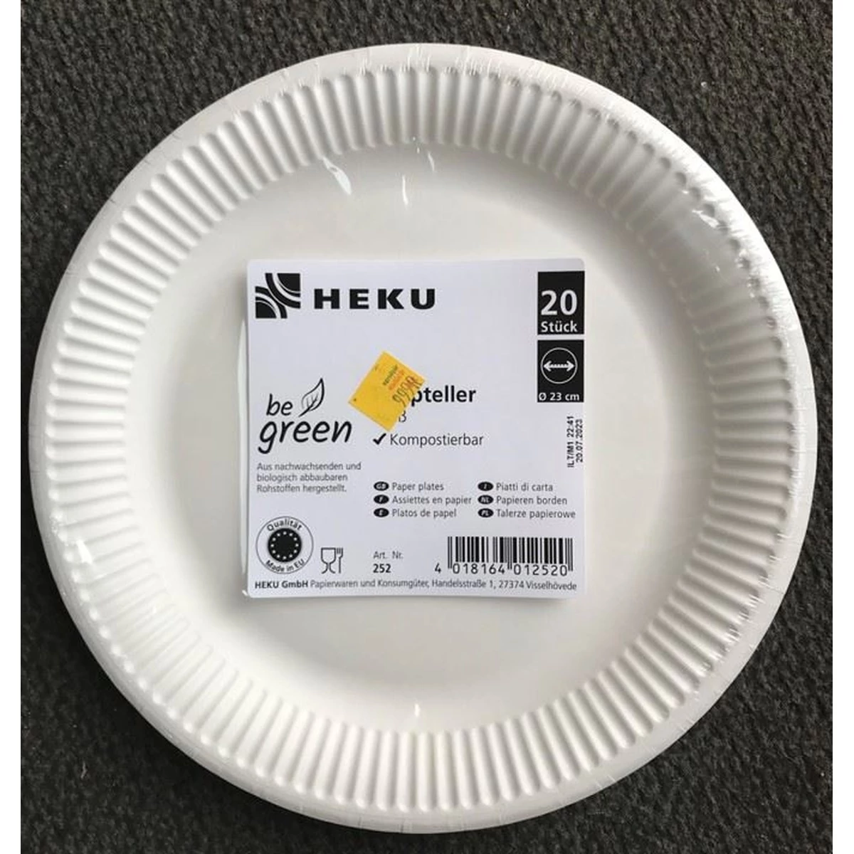 Papírtányér, 20 darabos, fehér színű, 23 cm-es. Komposztálható.