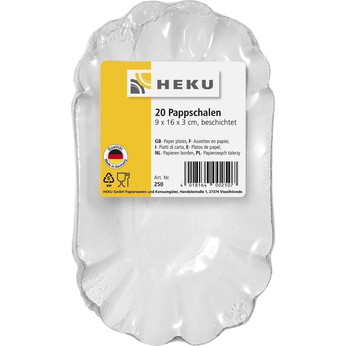 Tányér - Papír Fehér 20db, 9x16x3 cm,zsírvédővel, kb. 310 g/m2
