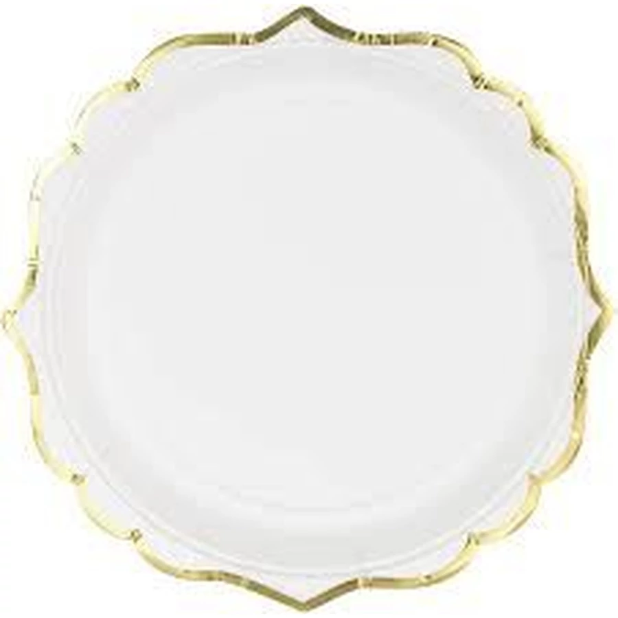 Fehér tányér arany szegéllyel, 6 darab/csomag. 18,5 cm átmérőjű.