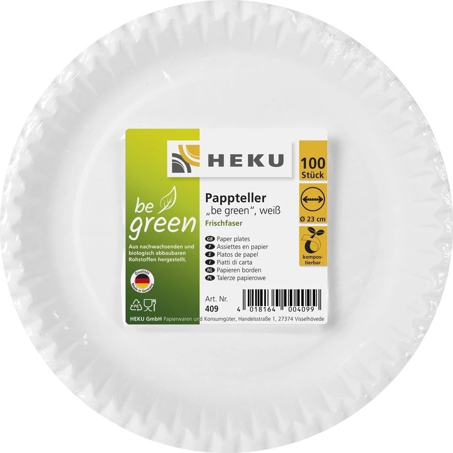 Tányér - Papír Lapos , 100 db/cs , 23 cm komposztálható