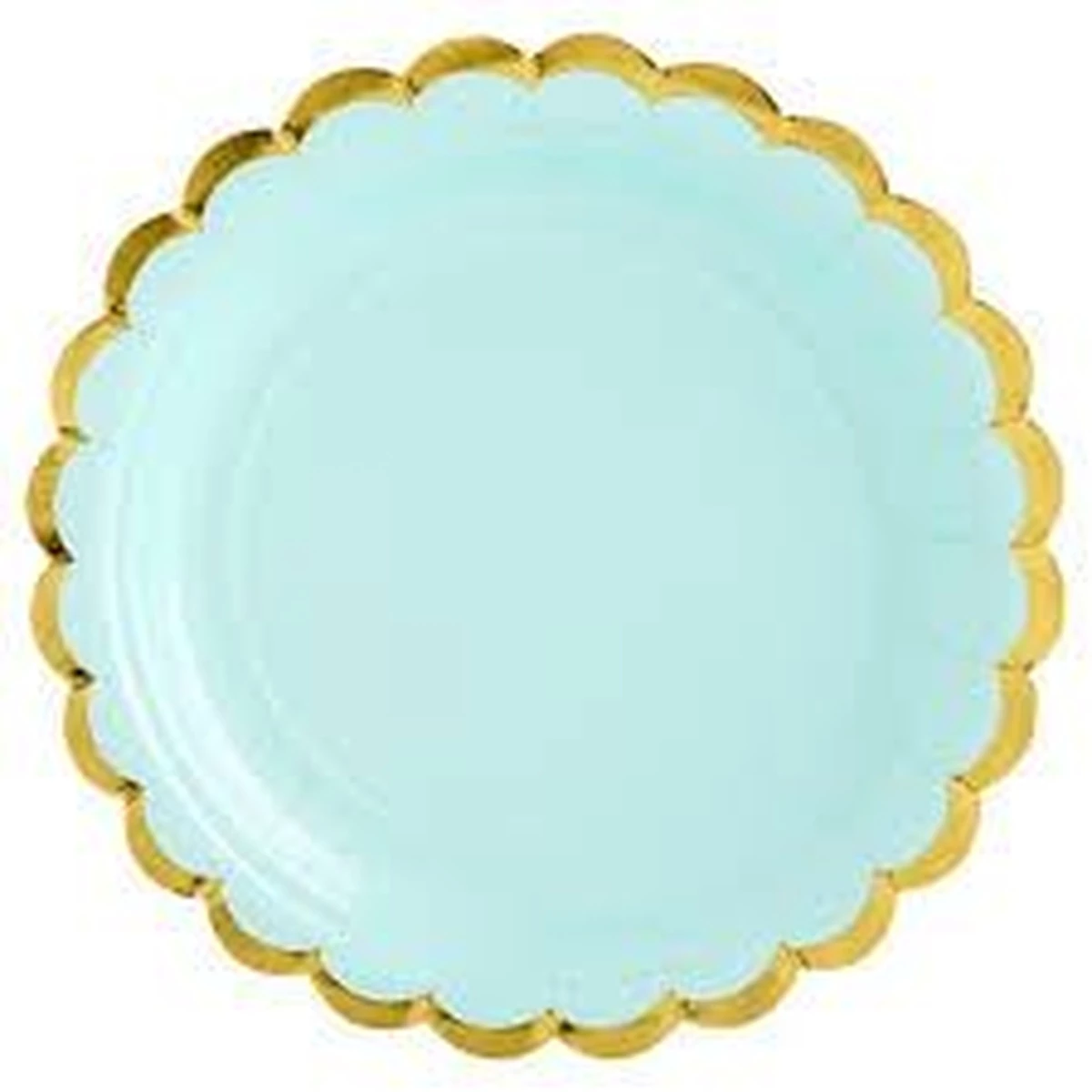 Menta színű tányér, arany szegéllyel. 6 darab/csomag. 18 cm átmérő.