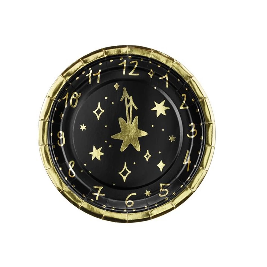 Papírtányérok Óra fekete színben, arany nyomattal,