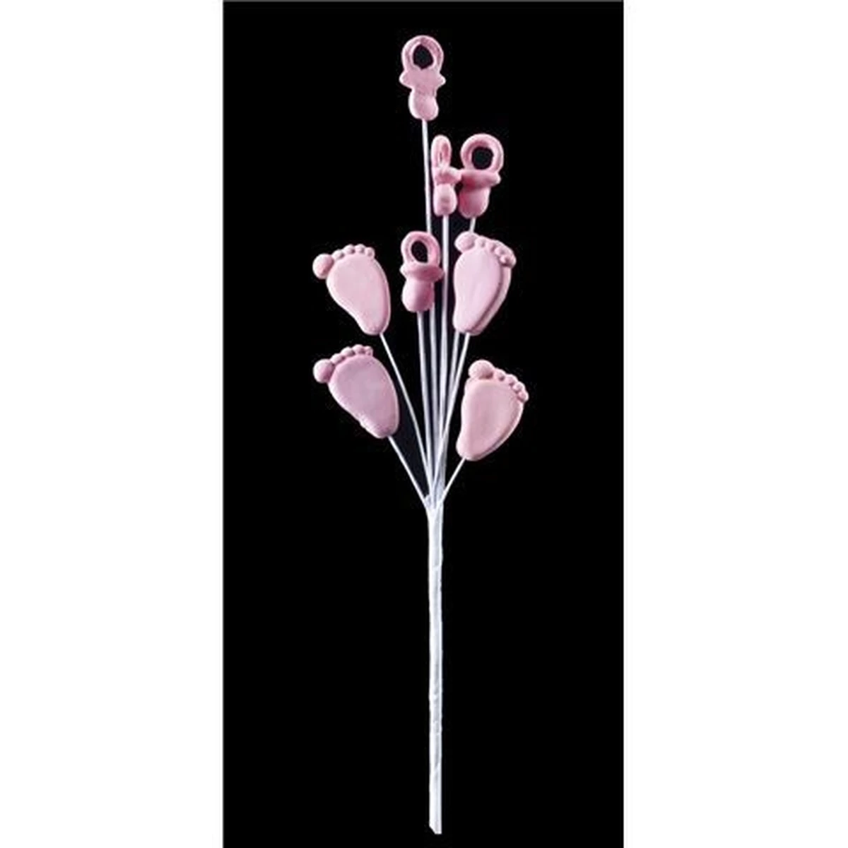 Tortadekoráció, cukor lábnyom és cumi egy csokorban, beszúrható.