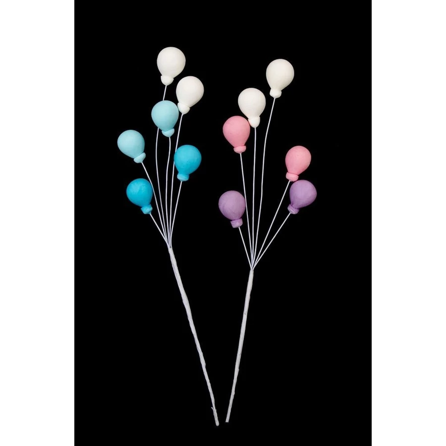 Tortadekoráció, cukor lufik egy csokorban, beszúrható.