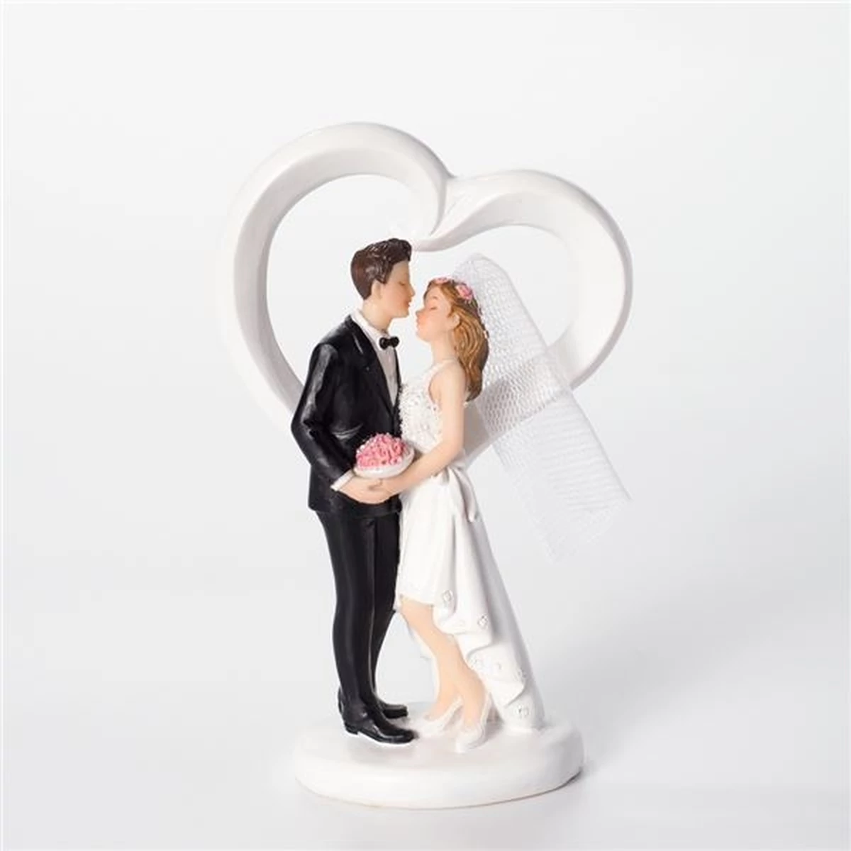 Kerámia tortadekoráció. Nászpár szív alatt. 13,5 cm nagyságú.