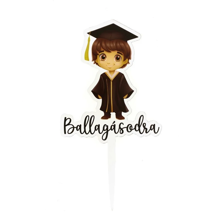 Műanyag tortadísz, beszúró - Ballagásodra felirattal, fiú mintával.
