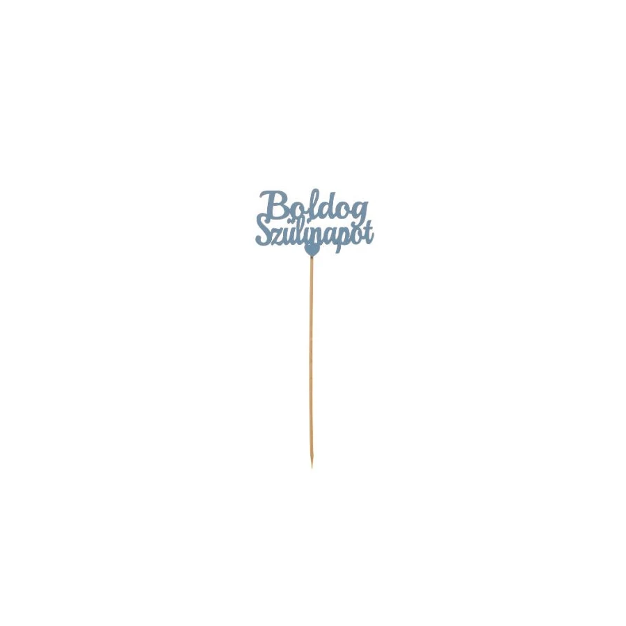 Fa tortadísz, beszúró, "Boldog Szülinapot! kék színű.
