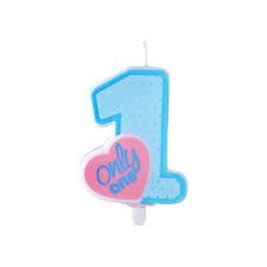 1-es számú tortagyertya, kék színű, szivecskés Only One felirattal.