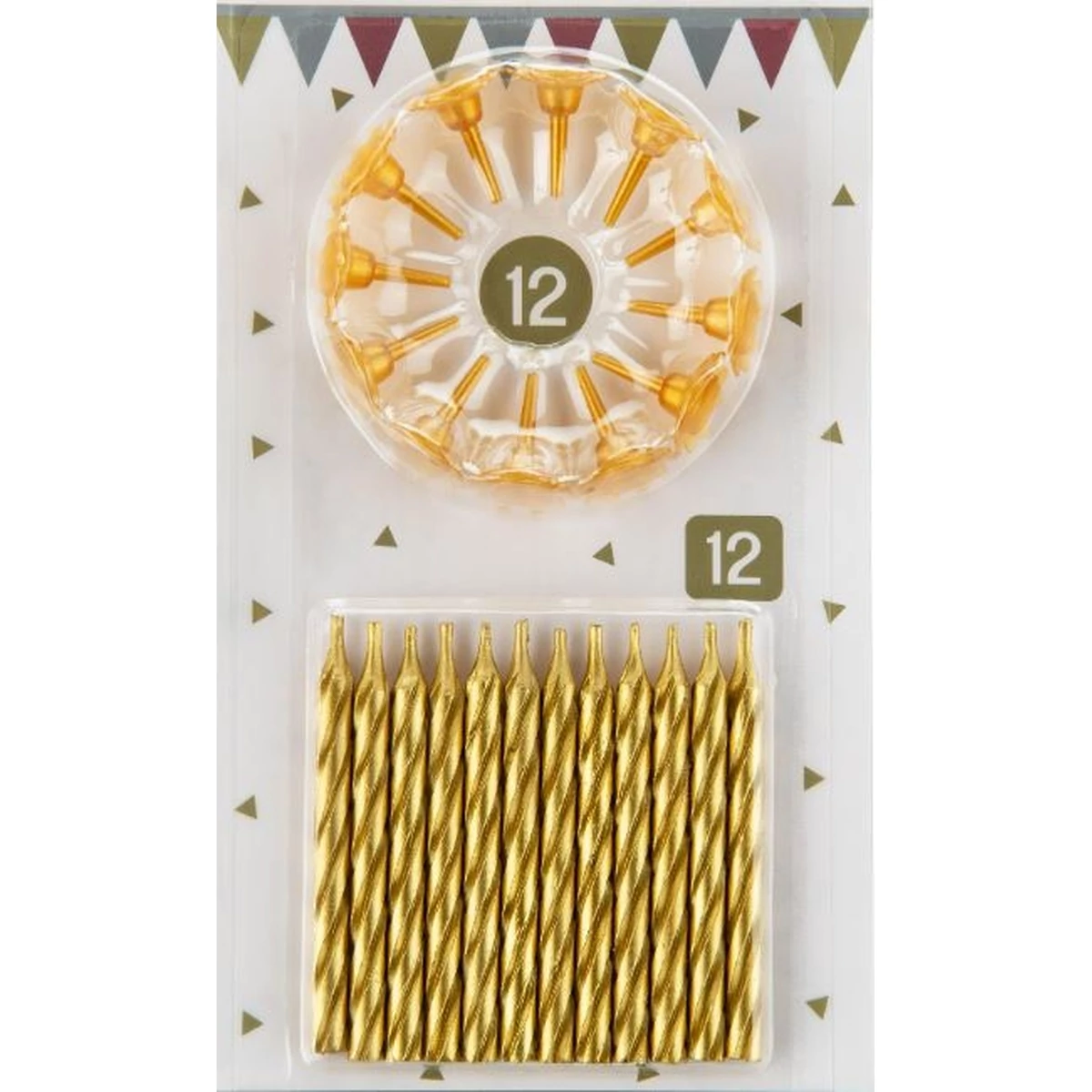 Arany színű szálgyertya. 12 darab tartóval.