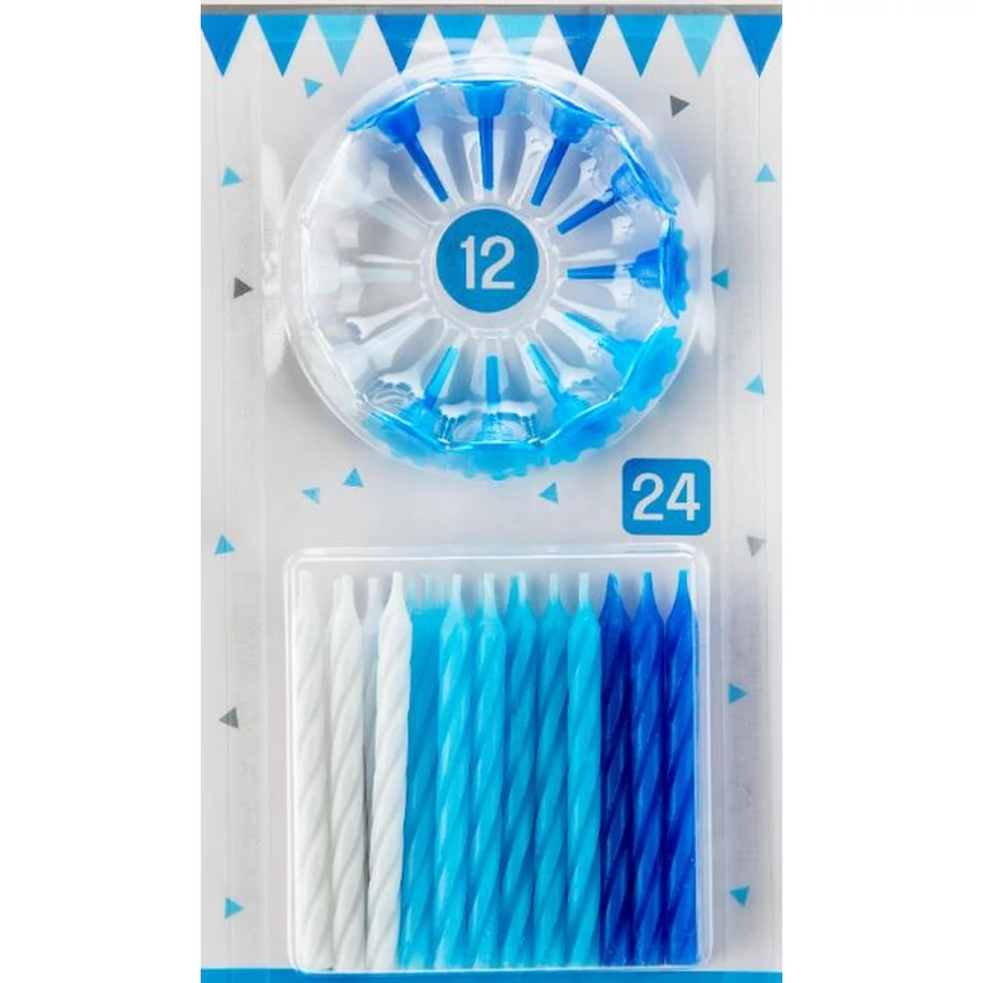24 darab tortagyertya fiús színekben, tartóval .