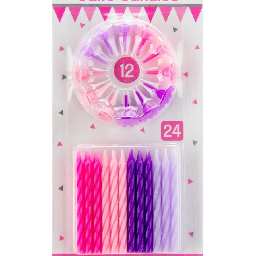 24 darabos, gyertyatartóval ellátott szálas gyertya lányos színekben.