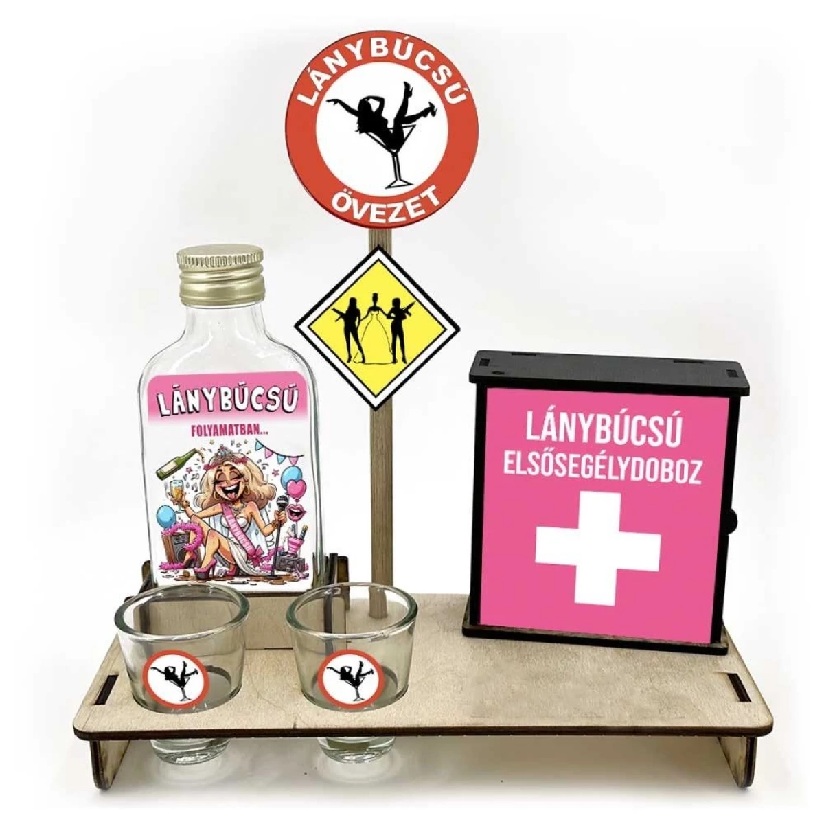 Lánybúcsúra. A vicces elsősegély dobozos pálinkás szett, egy remek vicces ajándék ötlet. Remek dekorációs kiegészítő, amely garantáltan emeli a pálinkázás szórakoztató szintjét. Az egyedi és vicces dizájn a pálinkás szettet sokkal többé teszi egy egyszerű italkínálónál.