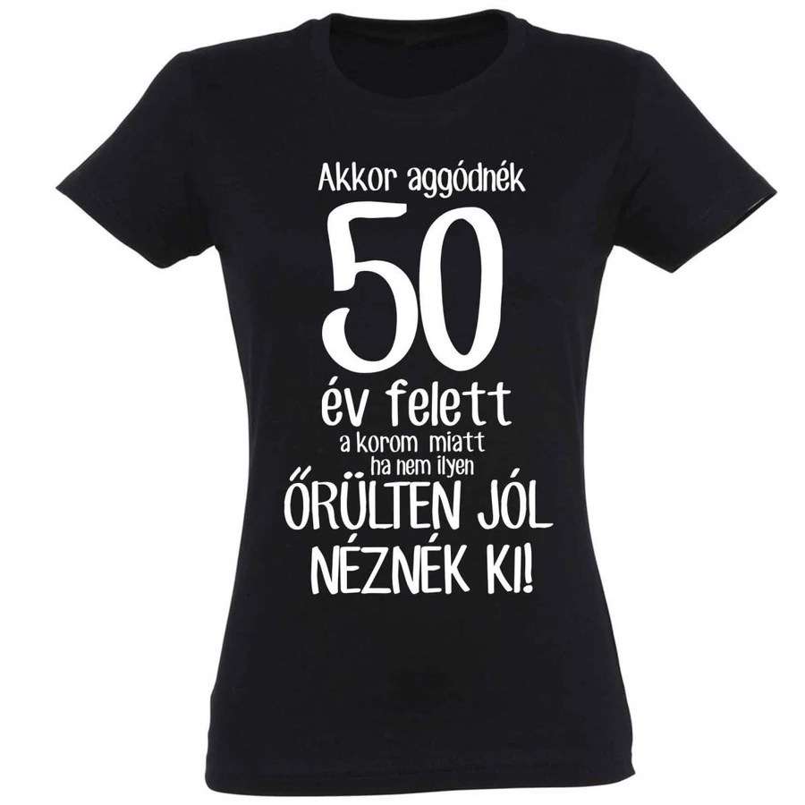 Vicces póló - Akkor aggódnék 50 év felett, "M" méret, fekete