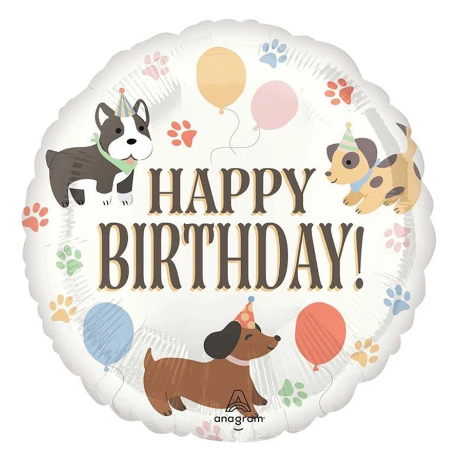 Vidám Kiskutyás Szülinapi Héliumos Fólia Lufi, 46 cm Héliummal