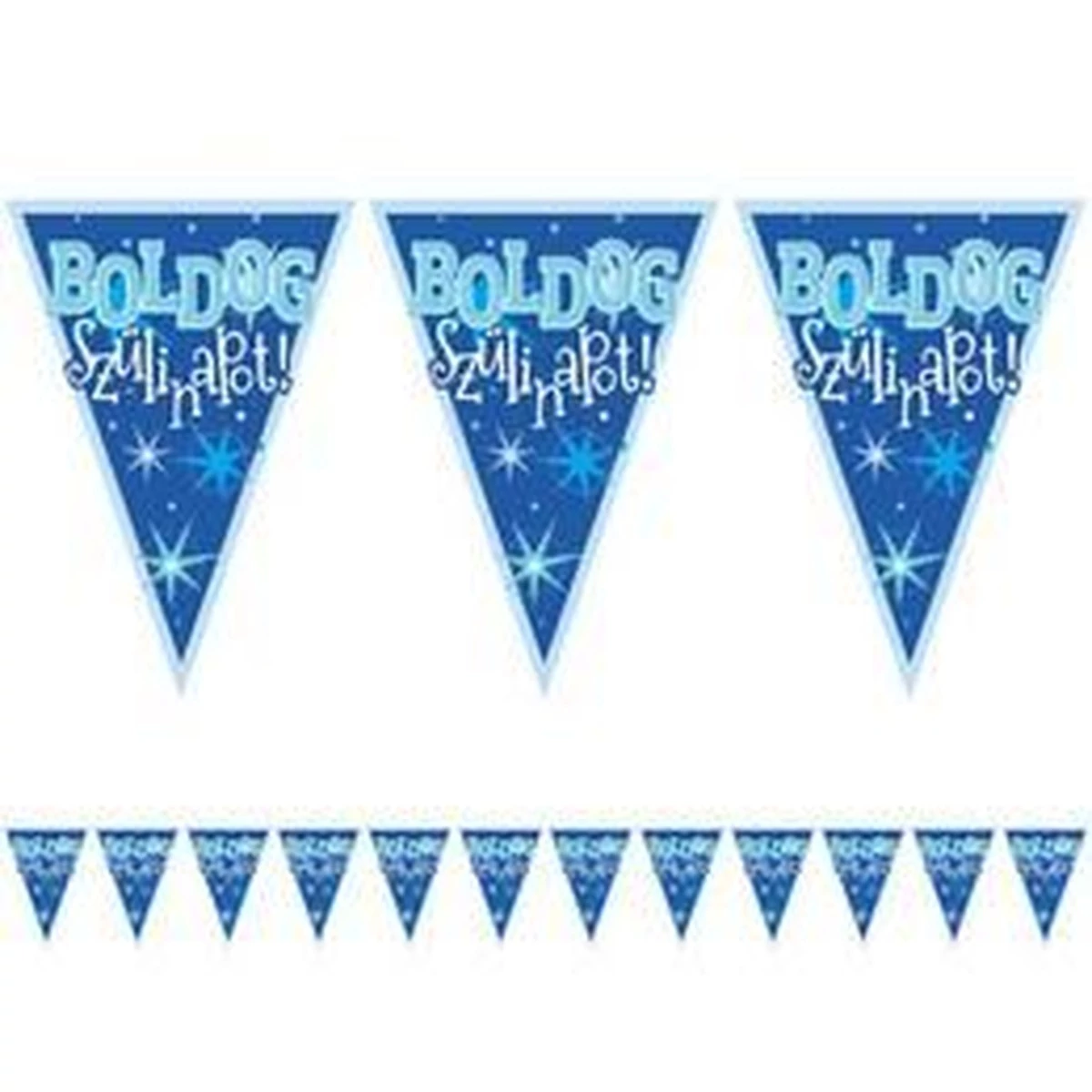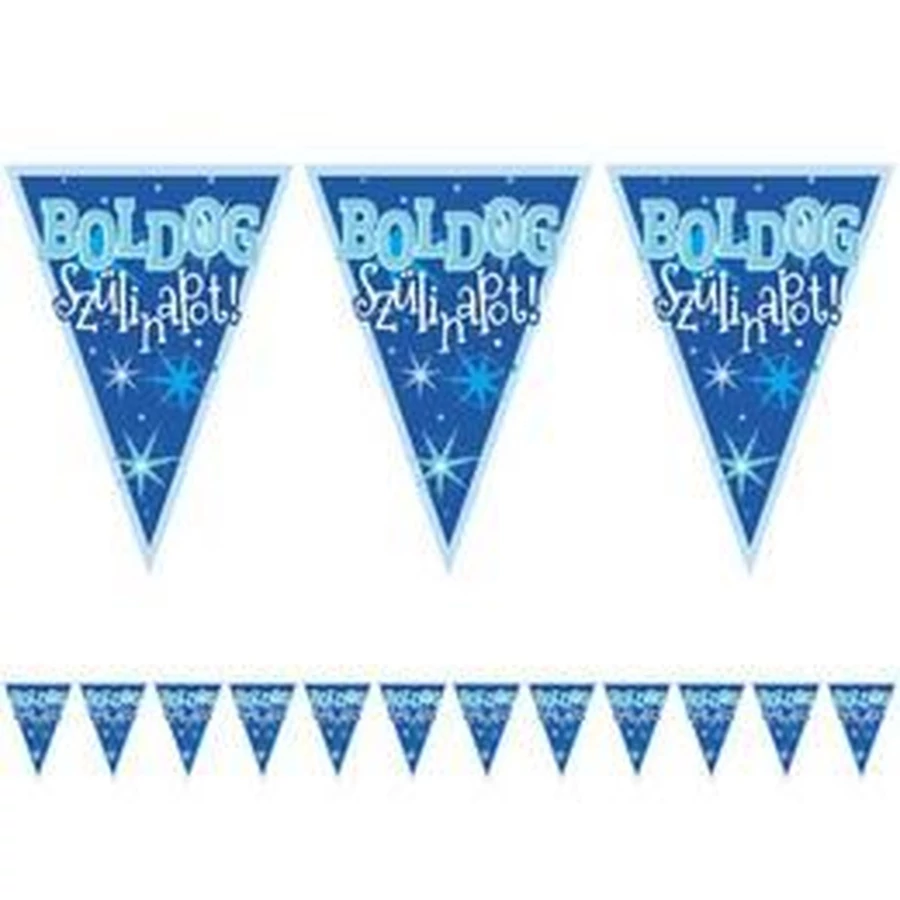 Kék színű Boldog Szülinapot feliratos zászlófüzér.