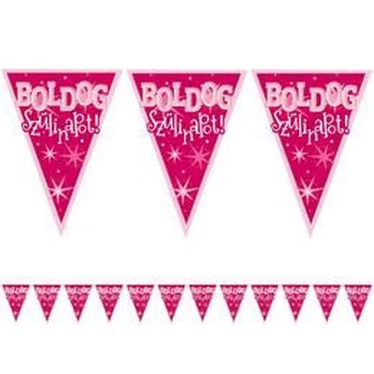 Rózsaszín színű Boldog Szülinapot feliratos zászlófüzér.