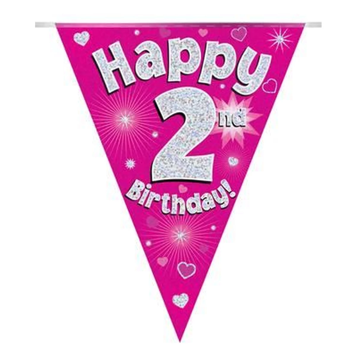 Zászlófüzér - Happy 2nd BirthdayZászlófüzér - rózsaszín zászlófüzér 3,9 méter, 11 darab zászlót tartalmaz.
