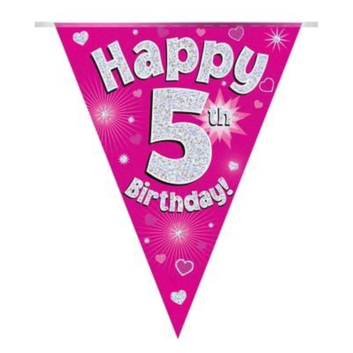 Zászlófüzér - Happy 5th BirthdayZászlófüzér - rózsaszín zászlófüzér 3,9 méter, 11 darab zászlót tartalmaz.
