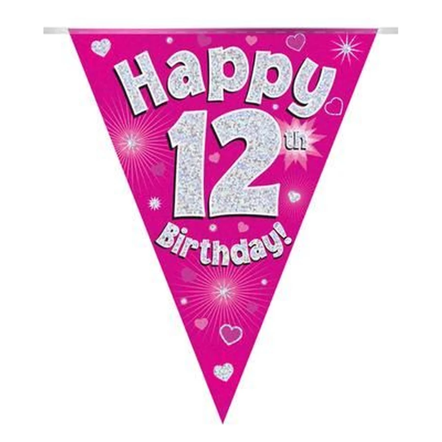Zászlófüzér - Happy 11th BirthdayZászlófüzér - rózsaszín zászlófüzér 3,9 méter, 11 darab zászlót tartalmaz.