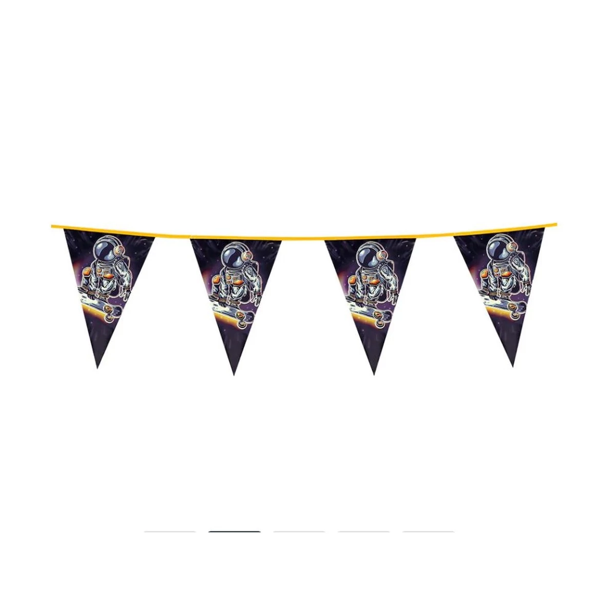 Ez az Űr zászlófűzér ideális dekoráció menő gyerekpartikhoz, tematikus bulikhoz vagy minden olyan alkalomhoz, ahol a kaland és az akció kulcsfontosságú.